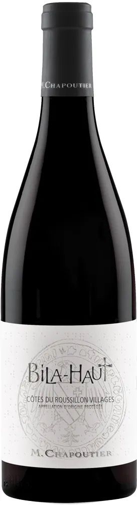 M.Chapoutier Bila-Haut e um vinho tinto de cor granada profunda.