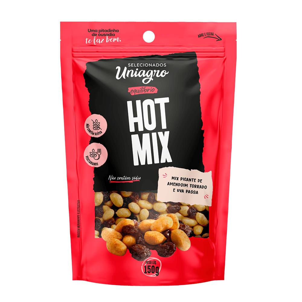 Experimente este snack para um momento de descontração ou como acompanhamento em encontros sociais. A nova embalagem com sistema abre e fecha permite que você leve o Hot Mix para onde quer que vá, garantindo praticidade e frescor em cada porção